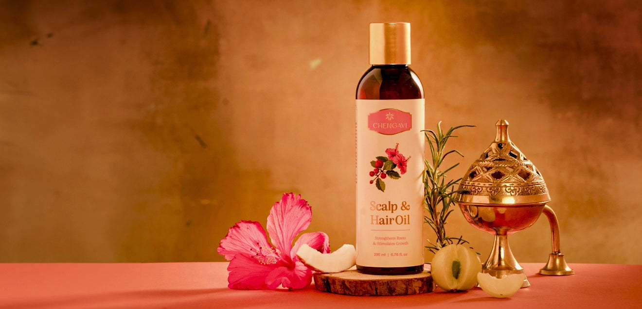 Nowadays, there is a rise in Ayurvedic hair care trends. True hair vitality begins at the scalp with an Ayurvedic formula. Hence, Chengavi’s Scalp & Hair Oil is specifically designed for this need.