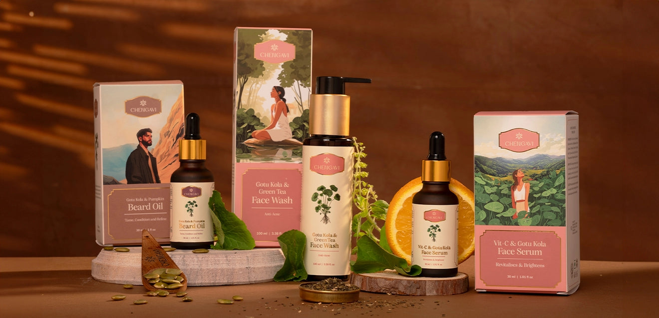 Chengavi’s herbal skincare for men is real, rooted, and pure. Our De-Tan Soap and Gotu Kola Pumpkin Beard Oil are the testament. They represent what the best Ayurvedic bath and body products should be: