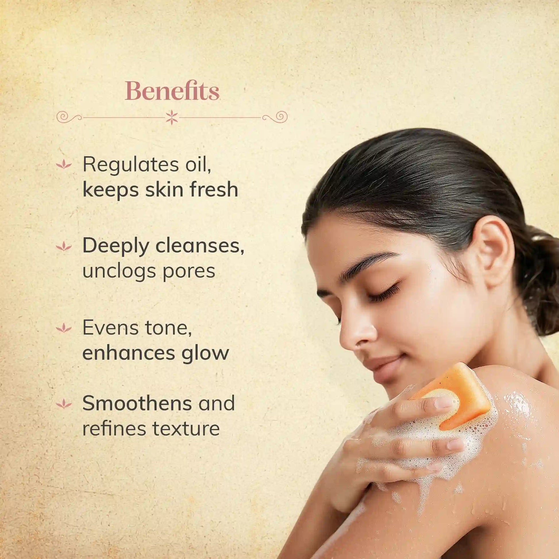 In Ayurveda, lemon is cherished for its kshaya (astringent) and teekshna (sharp) properties, which cleanse and brighten the skin. Its cooling nature balances pitta dosha, helping reduce excess oil, acne, and pigmentation. Packed with vitamin C and antioxidants, lemon promotes collagen production, protects against free radicals, and enhances skin radiance. Its natural antibacterial and exfoliating properties refine texture and even out skin tone for a clear, vibrant complexion.